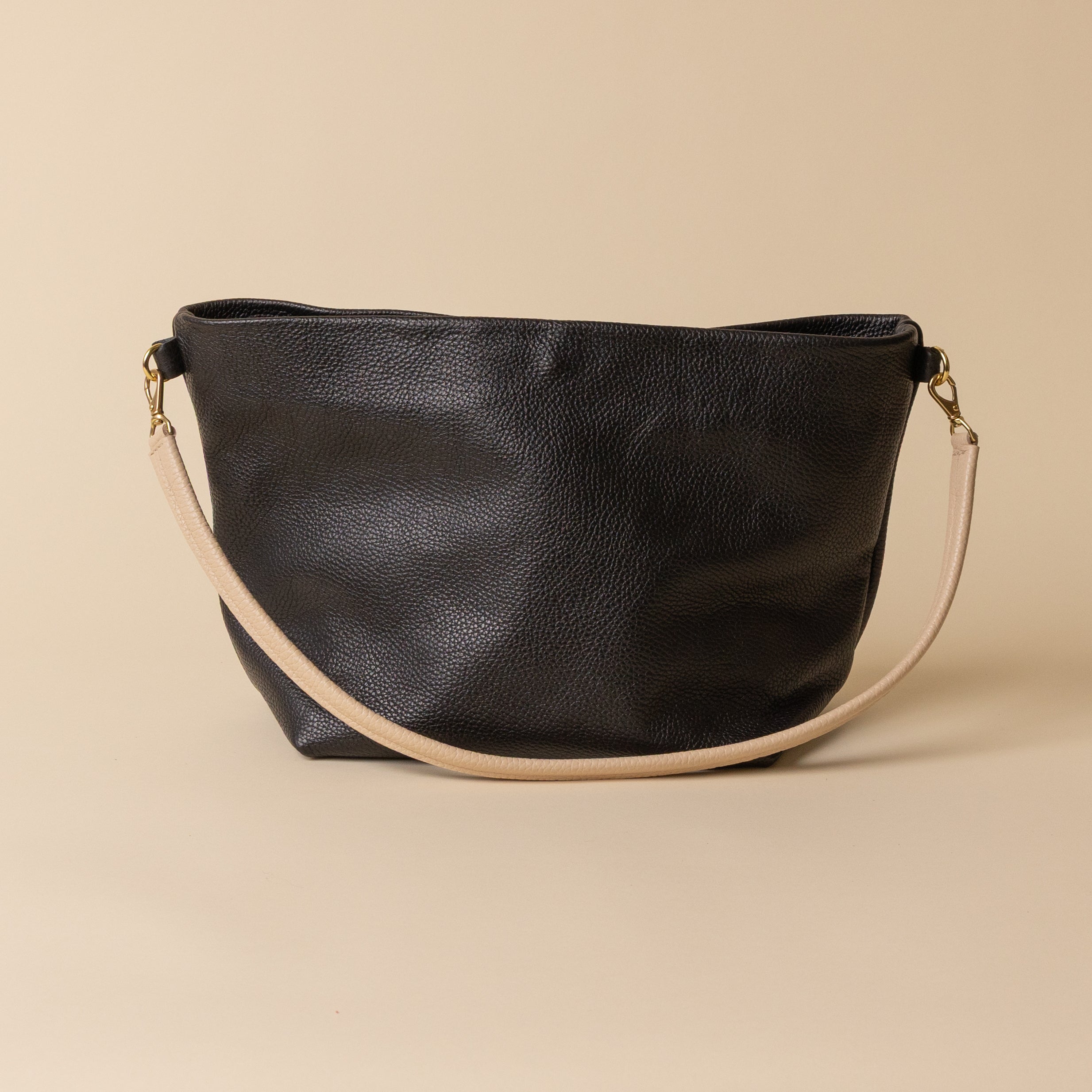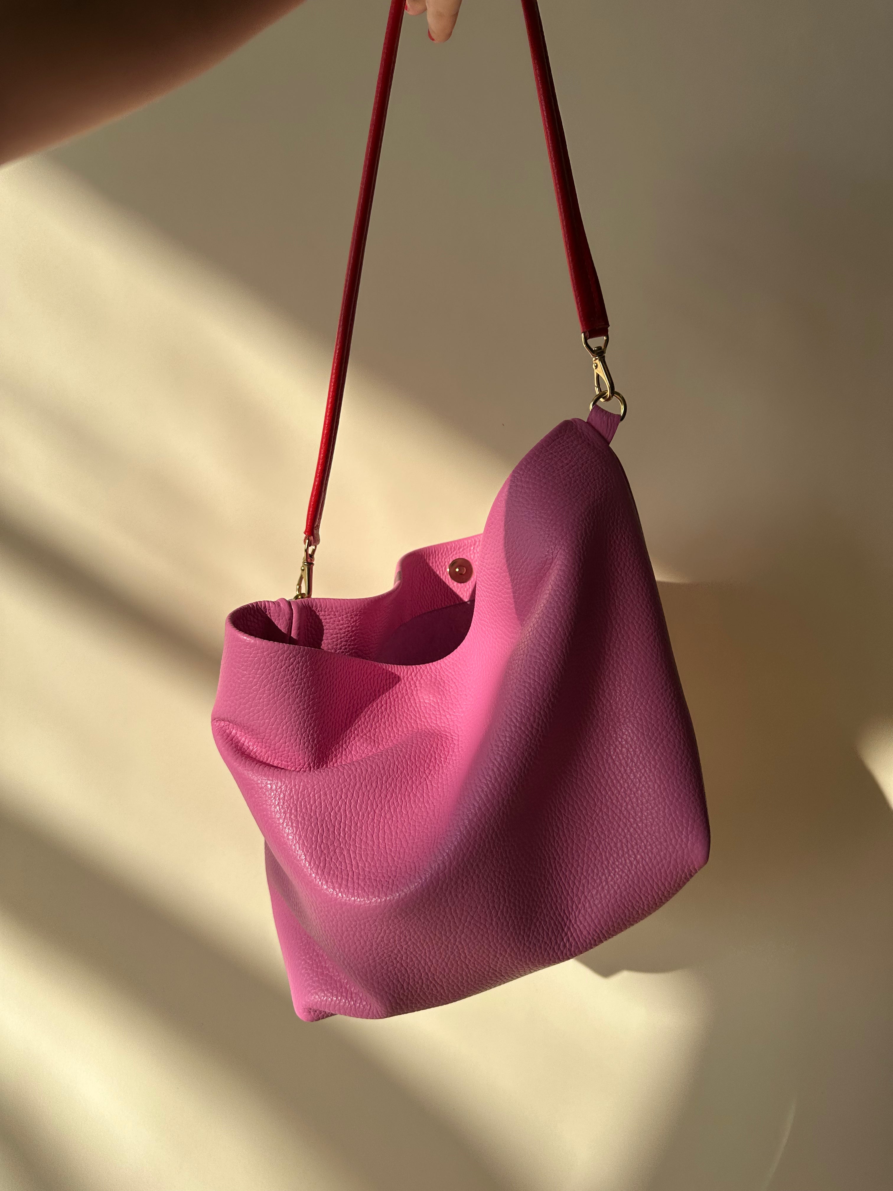 A bigger version of the original Party Bucket. Fit with a 25" leather strap with brass hardware and magnet snap closure.